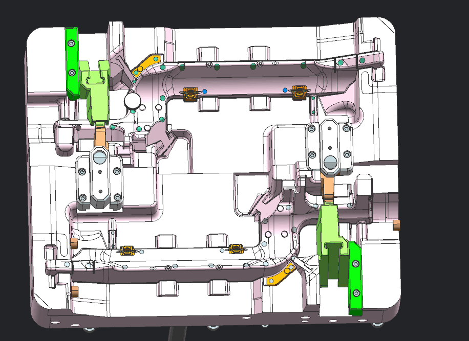 1、 當塑件按開模方向不能順利脫模時,應設(shè)計抽芯滑塊機構(gòu)。抽芯機構(gòu)滑塊能成型復雜產(chǎn)品結(jié)構(gòu),但易引起產(chǎn)品拼縫線、縮水等缺陷,并增加模具成本縮短模具壽命。