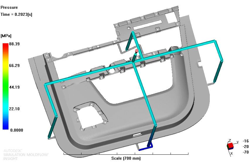 順序閥熱流道控制技術(SVG技術)是一種新型級式控制的熱流道技術,通過油缸控制按順序進膠,解決了傳統(tǒng)多點同步進膠的產(chǎn)品出現(xiàn)外觀缺陷的難題??捎行П苊馄噧韧怙椉霈F(xiàn)熔接痕,氣穴等缺陷,減少流長,降低成型壓力,在外觀要求嚴格的汽車內外飾件上發(fā)揮了巨大的作用。