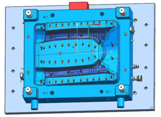 在汽車注塑模具中,針對汽車保險杠產(chǎn)品,模具設計時通常會采用先進的內分型面技術。其優(yōu)點是分型夾線隱藏在保險杠的非外觀面上,在汽車上裝配后看不到外觀夾線,不會影響產(chǎn)品外觀。但這種技術在難度與結構上都要比外分型保險杠復雜,技術風險也較高,模具成本與模具價格也會高于外分型保險杠很多,但因外觀美觀,在中高檔汽車中被廣泛應用。