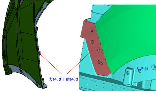 此側倒扣采用斜頂上斜頂?shù)慕Y構:
